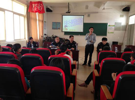 | 近日,为了在校园内普及法律知识,增强小学生的法制观念,北高中心小学邀请北高派出所民警来学校为孩子们做专题讲座。 派出所的民警在北高中心小学五楼多媒体教室为毕业班的孩子们做题为《预防未成年人犯罪》及《交通安全进校园》知识讲座。民警结合北高的具体情况讲明了青少年犯罪的数量、类型、特征,教育学生应该从那些方面进行防范,从而远离违法犯罪,做个懂法、守法的好少年。同时对北高的交通安全状况进行一番介绍,教给学生一些交通安全常识,号召学生回家向家长宣传交通安全知识,以期全民自觉遵守交通秩序。 本次专题讲座像一缕阳光,照亮了这些即将进入初中的孩子们的心田,为他们前行指点方向,懂得怎样做一名懂法守法的文明少年。(北高中心小学)