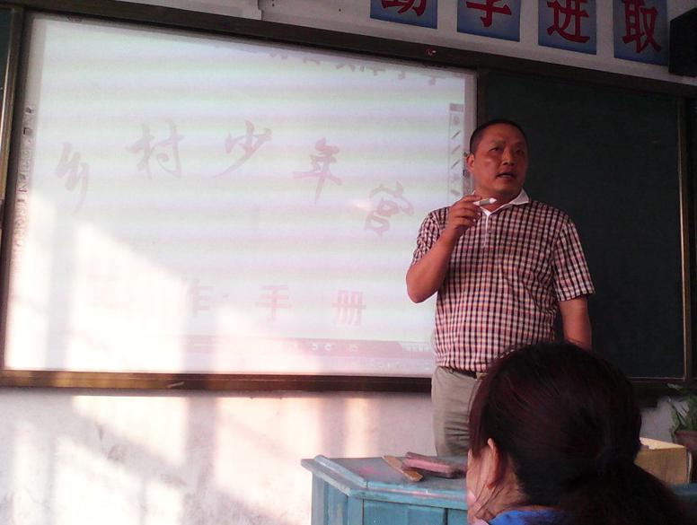 今天,校长庄超雄在学校教室给全校教师详细介绍建立“乡村学校少年宫” 的规划。
