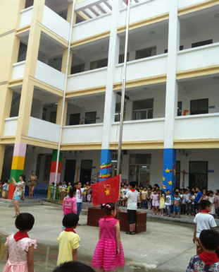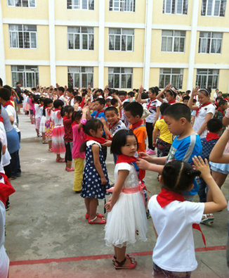 | 2014年5月30日上午,为了迎接“六一”儿童节,我校在操场举行了一年级小学生入队仪式。全体学生做了充分的准备,他们在大队辅导员和班主任的精心辅导下学习了少先队的基础知识,掌握了有关仪式的规范动作,演练入队仪式的宣誓呼号。 仪式上,大队辅导员老师宣布了入队新队员名单,四年级的老队员为一年级85名同学戴上了鲜艳的红领巾,使他们成为了一名光荣的中国少年先锋队队员,当鲜艳的红领巾佩带在他们的胸前时,新队员的脸上都洋溢着激动与自豪。新少先队员代表发言,表达了要努力学习,为红领巾增添光彩的决心。活动中我大队还评选了55名优秀少先队员和36名“好孩子”。活动的最后,全体新老队员郑重地举行了少先队呼号仪式。这次庄严而隆重的少先队入队仪式,激发了全体队员加入队组织的荣誉感、自豪感和使命感。相信我们的队员会继续继承和弘扬少先队的光荣传统,今后在学习和生活上有更大的进步。