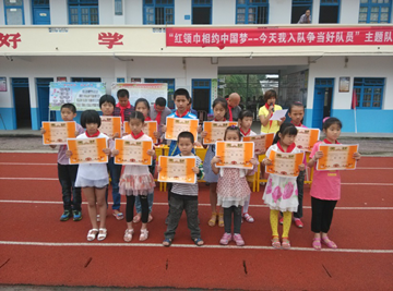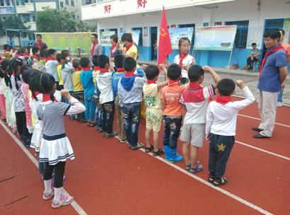 | 2014年5月30日早上,孩子们自己把自已装扮得格外美丽,校园里彩旗飘扬,欢乐喜庆写满校园的每个角落,我大队将在这里集中开展“红领巾相约中国梦”主题队日活动。
