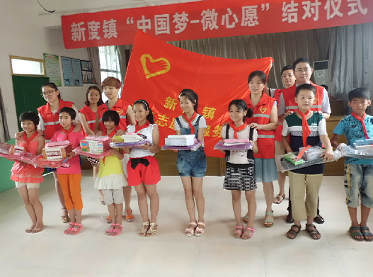 | 暑假前夕,新度镇青年志愿者服务队在新度善乡中心小学开展关爱品学兼优小学生志愿者活动。志愿者们精心准备了书包、文具盒、水壶、水彩笔、公主裙以及中外古今各种书籍等礼品,来到善乡中心小学,与该校15名品学兼优的小学生们结成对子。 一年级到五年级的15名小学生从志愿者手中接过了礼品后,少先队员给志愿者回敬队礼,学生们天真无邪的脸上写满了幸福的喜悦。活动结束后在与小学生的交流中,小学生们纷纷表示将更加努力学习,长大了好好回报社会爱心人士的关爱。 微心愿,大爱心,以志愿者们的微行动,来弘扬更广泛的志愿者精神,来点燃更多的爱心之灯。