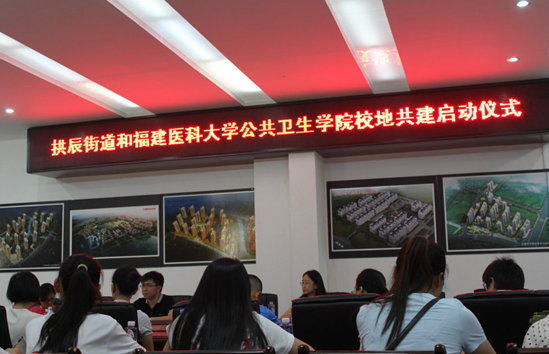 | 为响应团中央的号召,在全国范围内,鼓励大学生在暑期开展三下乡”社会实践活动,2014年7月9号,福建医科大学公共卫生学院“夏至兴化”实践队赴莆田市荔城区拱辰街道办事处,进行荔城区拱辰街道与公共卫生学院就社会实践基地的签约仪式。此次就社会实践基地的签约,一方面是为了让更多的公共卫生学院的青年学生了解体验生活,展现公共卫生学院三下乡社会服务志愿者自强、奉献、友爱、互助、进步的服务精神,另一方面运用先进的科学文化知识,引导群众解放思想,更新观念,提高素质,协助拱辰街道文化科技卫生事业繁荣发展。因此,在双方的积极交流与配合下,决定进行“福建医科大学公共卫生学院社会实践基地”的签约挂牌仪式。 此次活动主要由三部分组成:一是福建省莆田市荔城区团委书记林峰、福建省莆田市荔城区副书记陈君、福建省莆田市荔城区拱辰街道副主任林婷婷、福建医科大学公共卫生学院辅导员老师余燕老师、“夏至兴化”实践队队长方军军同学分别在签约仪式上发言致词,对双方的友好合作表示强烈的欢迎与期待。二是公共卫生学院代表余燕老师与拱辰街道代表陈明铸同志就福建医科大学公共卫生学院与莆田市荔城区拱辰街道办事处进行社会实践基地仪式签约。三是荔城区团委书记林峰和公共卫生学院余燕老师进行揭牌仪式,揭开了福建医科大学公共卫生学院与福建省莆田市荔城区公共卫生学院共建暑期“三下乡”社会实践基地,构建互助友好的沟通桥梁的序幕,开启了公共卫生学院“夏至兴化”实践队2014年暑期在拱辰街道的实践服务之旅。
