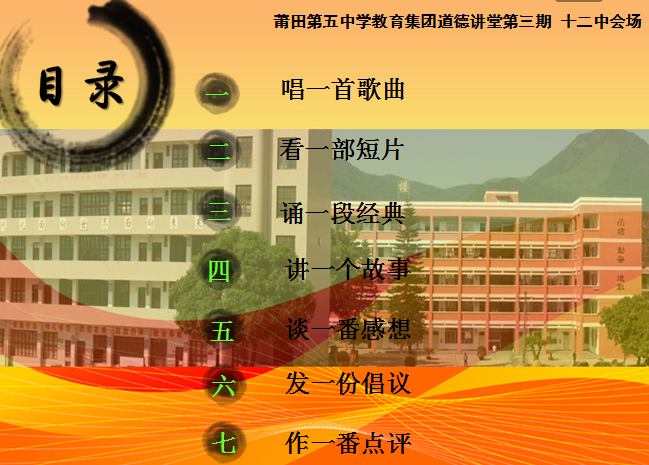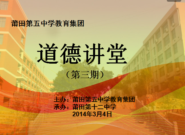 | 有人说生命如画,或五彩斑斓,或清丽素雅,都应是最美的精神画卷;有人说生命如诗,或激情澎湃,或从容静谧,都需有翩然的道德情怀。三月初春,莆田十二中开展了“三月里,我们与雷锋同行”道德讲堂。 讲堂围绕七个环节“一、唱一首歌;二、看一部短片;三、诵一段经典;四、讲一个故事;五、谈一番感想;六、发一份倡议;七、做一番点评”让大家明白了要像身边无数雷锋的影子那样献出自己的一份力量,响应雷锋的号召,走在学雷锋活动的最前线!珍惜时光,振奋精神,把握好新的机遇,努力使自己学有所成、思想高尚,最终成为有志之士、有用之才。