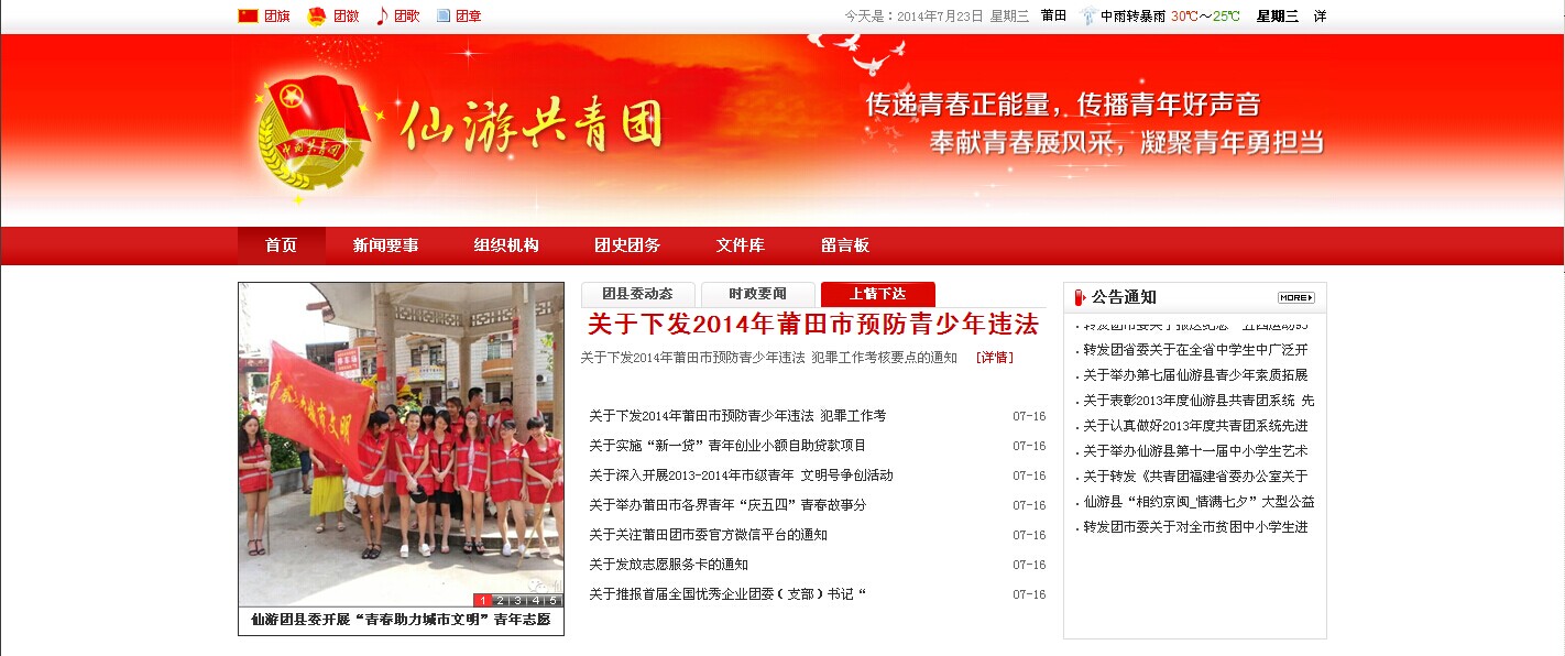 | 近日,我县青年人自己的网站-“仙游县共青团网”()正式开通了。网站除了设有“团县委工作动态”、“乡镇团委动态”、“学校团委动态”、“青年志愿者”、“青年文明号”、“少年先锋行动” 、“公益慈善”、“希望工程”、“就业创业”等多个栏目之外,还在网页显目位置设置团旗、团徽等知识链接供青年朋友点击学习。整个网站页面布局与以往相比更加简洁、有序,极大地方便各基层团员青年获取需要的信息。仙游县共青团网站将会成为全县各级团组织信息交换的主要平台,通过这一网络平台全县青年可以学习上级党团文件精神、掌握仙游共青团的最新工作动态、增强各级团组织的互动和交流。 网站的开通是我县共青团工作迈向信息化、制度化的一个标志,也是仙游团县委全面落实党的群众路线教育实践活动的一个举措,旨在为深入了解青年的生活、工作需求,进而更好地帮助他们。