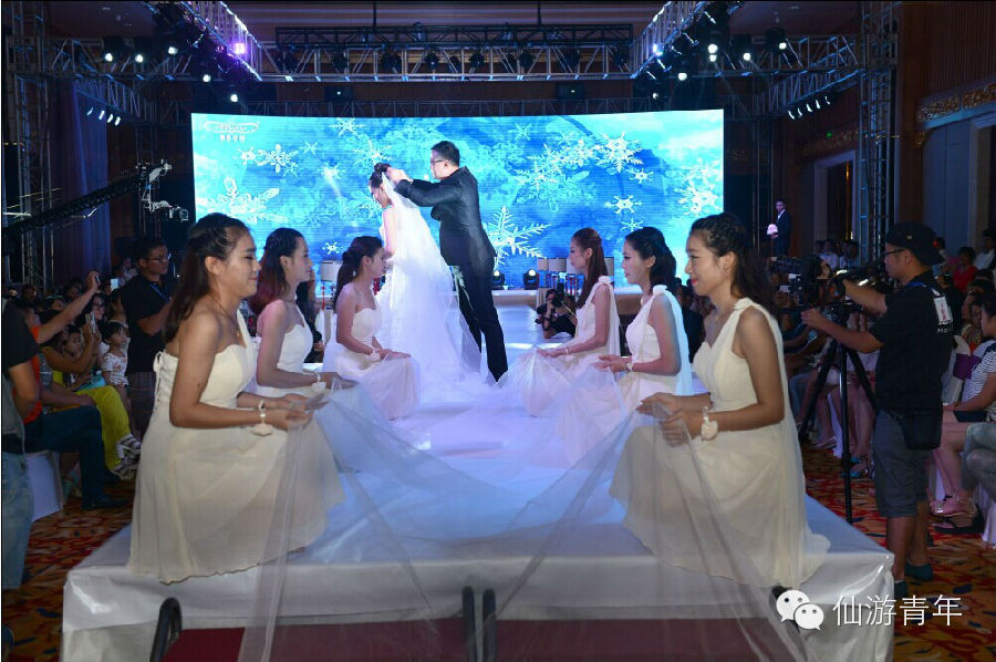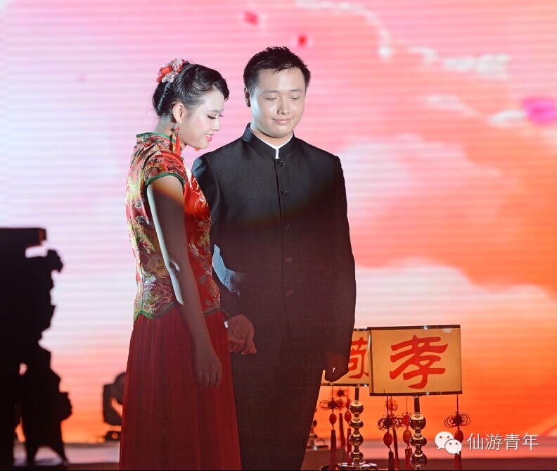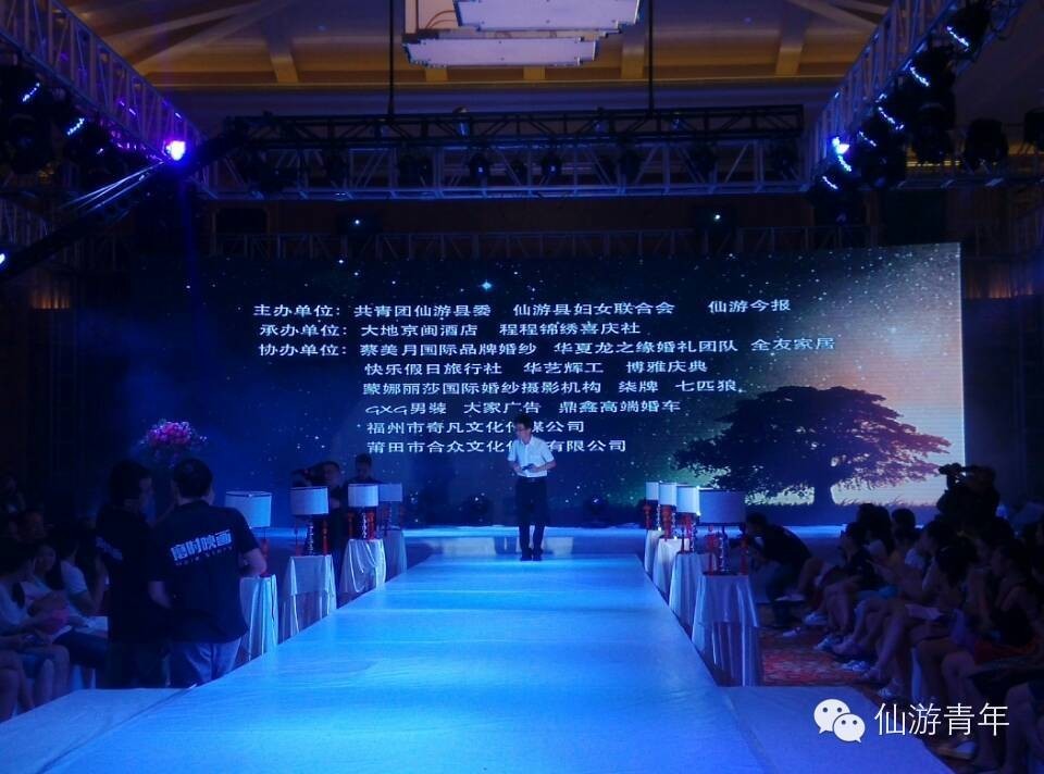 为认真贯彻落实习近平总书记“五四”重要讲话精神,在全社会践行社会主义核心价值观,弘扬中华优秀传统文化,提高青年对婚姻内涵的认识,引导青年以实际行动告别婚事大操大办的陈规陋习,倡树婚事新办、简办的社会新风,8月12日晚,由仙游团县委、县妇联、仙游今报联合主办,大地京闽酒店与仙游程程锦绣喜庆社共同承办的仙游县首届青年婚礼文化节之“回首之间”大型主题婚礼秀成功举行,华夏龙之缘婚礼团队创始人张铁龙先生、中国婚纱第一人蔡美月女生出席活动,全县共500多名青年朋友参加。 整个婚礼秀分弦彩灯光秀、国际名牌婚纱秀、大型西式婚礼《为爱加冕》、大型主题婚礼秀《回首之间》四个表演秀。独具匠心的舞台设计,神秘浪漫的婚礼现场,灯光舞美的完美结合呈现出惟妙惟肖的裸眼3d效果,不仅为到场的青年朋友带来了视觉上的震撼,更透过这些元素展现了爱情的真谛。此次“回首之间”婚礼秀,以仙游文化宣传片《回首之间》为模板,讲述一段曲折美丽的爱情故事,更把中华传统元素“爱、孝、礼、和、敬”等社会主义核心价值观融入其中,令在场的青年深刻感受到要用一颗感恩的心珍惜爱情、孝敬父母、回报社会。 本次活动抓住了新时代青年的主流需求,通过婚礼秀这种青年喜闻乐见的展现形式弘扬社会传统文化,倡导移风易俗的文明新风,同时又结合现代时尚演绎,既有很强的吸引力和观赏性,又达到了弘扬社会主义核心价值观的目的,深受全县广大青年朋友的喜爱和好评,大家纷纷表示,他们将以实际行动为推动仙游精神文明建设、促进社会良好风气的形成贡献自己的一份力量。