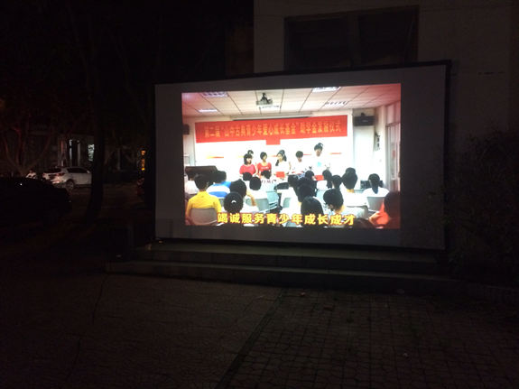 | 8月21日晚,共青团涵江区委“中国梦 青春情”百场电影走进青年活动在区信访局门前广场正式启动。在今后3个多月的时间里,将把100多场电影免费送进全区各个村居社区、企业,学校,让青年人在家门口享受丰富的电影文化大餐。 此次百场电影走进青年活动,是我委深入践行党的群众路线,举办的一项重要的青年文化活动和社会公益活动。共青团涵江区委以露天电影这种青年喜闻乐见、积极参与的文化活动为载体,在片头、片中插播希望工程、征兵宣传、小额贷款等公益广告,使团的声音更好的覆盖广大青年。截止目前,已走进涵东街道新区社区、国欢镇新坡村、国欢镇码头村等五个村居,覆盖青年群众200多人。