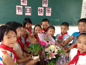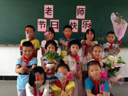 班会课上,孩子们迫不及待地为老师们献上了早已准备好的鲜花,手工花,自制小贺卡,手工小作品等。浓浓的师爱芬芳了这个教师节,芬芳着每一个孩子和老师的心田。
