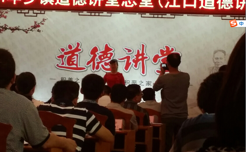 为推进基层道德建设,深入贯彻党的群众路线教育实践活动,4月18日,莆田市首场乡镇道德讲堂总堂在江口镇政府开讲。本次讲堂以“爱岗敬业践行群众路线,无私奉献铸就无悔人生”为主题,通过看一部短片,诵一段经典,讲一个故事,谈一番感想,听一首歌曲,作一番点评、送一句赠言等七个环节,给在场的党员干部、职工群众献上了一堂感人至深的道德课。活动中,江口镇团委组织青年志愿者积极参与到此次道德讲堂的活动筹备、发动宣传、诵读经典、谈论感悟等活动环节。