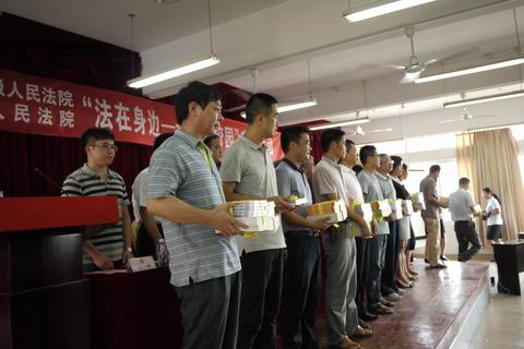 | 为了加强我区法制教育基地建设,增进辖区各中小学学法、知法、守法意识,提升保护未成年人的宣传教育水平,构建平安和谐校园。9月12日上午,荔城区法院、团区委、区教育局、区关工委联合主办的“法在身边—送法进校园”专题宣传活动启动仪式在莆田第九中学图书馆五层会议场举行。市关工委主任施天水,市关工委副主任、中院关工委主任张延灿,市教工委副书记、市教育局副局长彭鲤芳,区委常委、组织部部长林学坚等市区领导出席启动仪式。全区各中小学领导及莆田九中师生代表参加启动仪式。 启动仪式上,莆田九中陈云峰校长代表参会的全区中小学领导致辞,荔城区法院院长王俊宁、市中院政治处主任陈文泰也先后致辞。最后,在主席台就坐的市区领导分别向参会的各中小学赠送了相关的法律书籍和光盘。 启动仪式后,与会人员有序地参观了法制宣传展示板。最后,区法院法官陈力作法制宣传主题讲座。讲座中,陈力法官通过声情并茂的现场讲解、形象生动的PPT图片、浅显易懂的宣传资料,向学生们讲解了学生需要了解的法制知识,使广大师生接受了一次生动的法制教育洗礼,提高大家的法制意识,学会了依法律己、依法办事、依法维权,有效促进了我区普法宣传教育工作的深入开展。