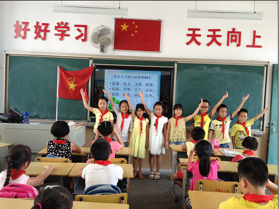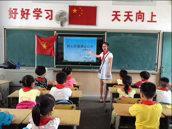 | 为深入贯彻落实《习近平总书记重要讲话精神在中小学少先队员中广泛开展培育和践行社会主义核心价值观活动的通知》,同时为了引导少先队员们认真学习“六一”习近平总书记提出的要求,帮助他们努力牢记社会主义核心价值观,激发起积极参与“争当美德小达人”雏鹰争章活动。涵江区实验小学三年段各中队(共432人)在开学第一周举行了“核心价值观记心中”少先队活动课。 本次少先队活动以“核心价值观记心中”为主题。各中队统一时间通过看视频、学讲话、读核心价值观主要内容、唱歌谣等活动形式,引导少先队员认真学习“六一”习近平总书记讲话精神。在各中队辅导员的带领下,少先队员们观看了2014年“六一”习近平总书记参加少先队活动的视频;朗读童谣《习爷爷教导记心间》,牢记习爷爷的16字要求——“记住要求,心有榜样,从小做起,接受帮助。”;并交流了自己对社会主义核心价值观的认识、做法;最后队员们唱响《牢记核心价值观》:“我们手拉手,我们心相牵,践行社会主义核心价值观,二十四个大字牢牢记心间……”催人奋进的歌曲激励着广大少先队员努力成为培育和践行社会主义核心价值观的小模范。 在此次活动中寄予了老师们对少先队员们的新希望——积极参加“争当美德小达人”雏鹰争章实践活动,争得“进步章”,并能够切合实际,在说、画、写、做等方面学习与实践社会主义核心价值观。 |