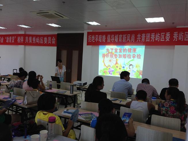 9月27日下午,共青团莆田市秀屿区委员会在莆田妈祖文化城开展题为“拒绝早暗婚 携手幸福人生”的计生知识宣传活动,旨在通过青年讲堂,向青年朋友倡议婚育新风尚,树立积极健康向上的世界观、人生观、价值观,助力青年成长成才。