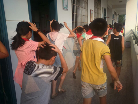 | 为了让广大师生深入地了解,在突遇地震的紧急情况下,提高学生自救互救的能力以及突发事件的应变能力和自救能力。白塘中心小学于2014年9月29日举行了安全紧急疏散演习。 为了搞好此次演习,学校专门制定了详细的演习方案,明确责任,落实任务,全校师生积极参与、全力配合,按预定方案冷静有序地进行。 下午第三节课时,演练的警报声响起时,各班学生在任课教师的指导下,双手抱头,迅速蹲在桌旁进行室内紧急避险.30秒后,在演练指挥长的口令下,全校学生迅速撤离教学楼到操场。在楼道相对窄小的楼梯转弯处,学生有秩序的迅速通过,紧张而不慌乱。负责楼梯口疏导的老师坚守在自己工作岗位上,直到最后一名学生通过,才迅速撤离。疏散到操场的学生在班主任老师的带领下,整队、清点人数,全校学生无一人掉队,师生全部到达指定安全位置. 本次地震演练活动的顺利完成,强化了师生的安全意识,使抽象的安全演练变成具体的实战演习,使全校师生基本了解了灾害发生时的应对措施,大大增强了广大师生的安全意识与自护自救技能,最大限度地保护了全校师生的生命安全。