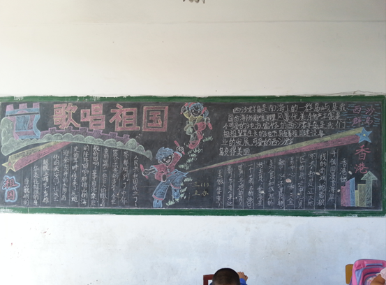 自上周起,学校通过悬挂横幅、贴标语等方式进行广泛的宣传,正式启动“向国旗敬礼,做有道德的人”网上签名寄语活动。紧接着,“歌颂祖国•欢度国庆”黑板报、手抄报比赛也分别在同学们当中展开。除此之外,学校还开展了“中国梦、我的梦”主题征文活动。