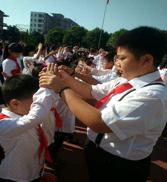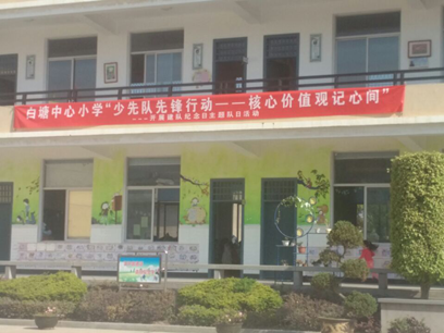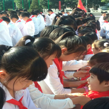 | 2014年10月13日是中国少年先锋队建队65周年的日子,当日,白塘中心小学举行《少先队先锋行动——核心价值观记心间》活动纪念中国少年先锋队建队65周年。 升旗仪式后,在鲜艳的队旗下,新队员们不但戴上了红领巾,还庄严地许下了自己的誓言;新队员、老队员代表分别上台发言,表示作为一名少先队员要用自己的实际行动表达对祖国的热爱之情;接着,家长代表上台发言,表示会积极配合老师的工作,为了孩子的美好明天,一起努力;最后吴校长对全体学生提出了殷切希望,希望大家如宣誓的那样,好好学习、好好锻炼、学会学习学会做人、多为他人着想,多为集体着想。 活动不但激发了新生对加入少先队的愿望,而且让全体学生对少先队组织有了更深的认识,更强的信念。使少先队员在润物细无声的氛围中受到感染,增强了少先队员对祖国的热爱和民族自豪感。