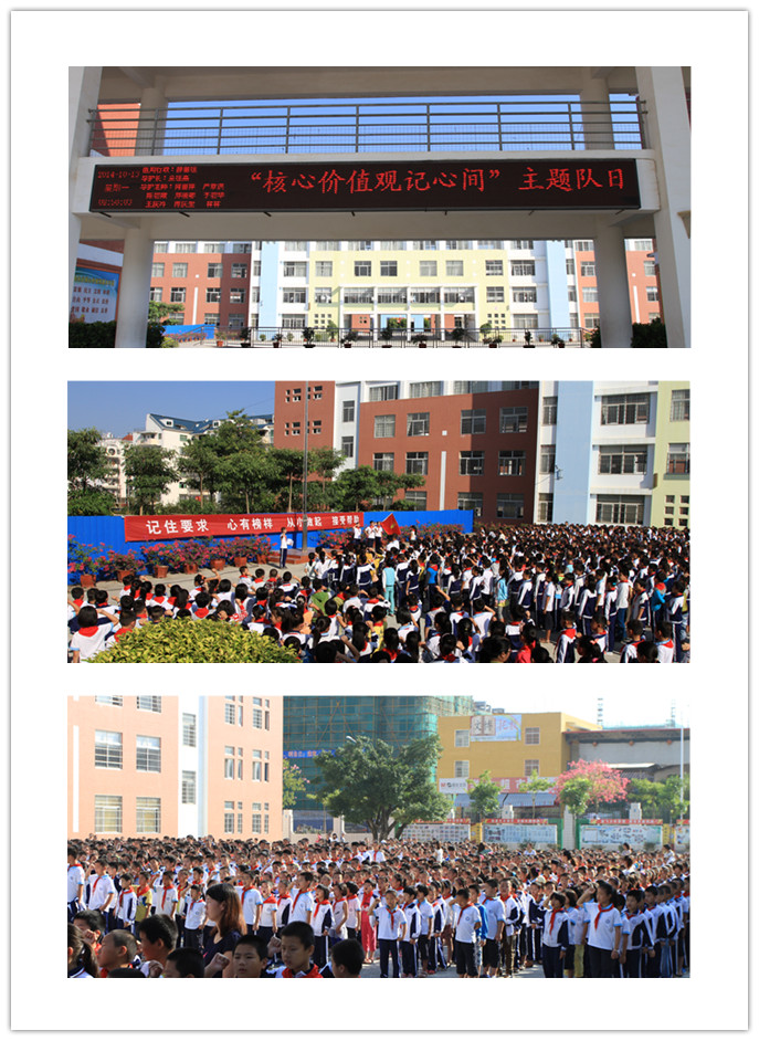 为积极培育和践行社会主义核心价值观,推动学生对核心价值观的理解。10月13日早晨,鲤南中心小学举行了“社会主义核心价值观记心中”主题大队会活动。在庄严的国歌声中,全体师生注视着缓缓升起的五星红旗,嘹亮的国歌唱响在校园里。接着,学生代表发表了热情洋溢的讲话,详细解读了社会主义核心价值观的内涵,深情地表述了作为一名小学生如何在日常学习生活中践行社会主义核心价值观。随后,在大队长的带领下,全体少先队员一起诵读了社会主义核心价值观的基本内容,并号召全体师生积极向上,从我做起,从身边做起,从小事做起,努力学习,携手共进,为实现“中国梦”而不断努力。 此次活动,丰富了“社会主义核心价值观”的内容,激发了同学们努力学习、勇做培育和践行“社会主义核心价值观”好榜样的决心。下一步,学校将继续组织同学们深化学习“社会主义核心价值观”,开展喜闻乐见、丰富多彩的实践活动,将学习活动落到实处。
