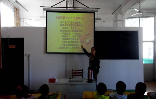 | 在第65个建队日即将到来的时刻,为了让一年级的学生了解少先队组织,热爱少先队组织,白沙中心小学大队部开展了入队前教育活动。2014年10月11日下午,白沙中心小学一年级学生聚集在学校的多媒体教室里,上了一堂队会课,队会由大队辅导员王老师主持。王老师向预备新队员介绍了少先队的历史,学习了队知识并进行队礼仪的训练,王老师深入浅出的讲课深深地吸引着大家。在互动环节中,新队员积极参与,踊跃发言,表示在今后要牢记自己是一名光荣的少先队员,在学习和生活中要团结队员、好好学习,不断的为红领巾增光添彩。通过活动,新队员对少先队组织有了更深的了解,也产生了感情,相信他们会在新的组织中快乐地学习、生活,健康地成长,成为祖国建设的预备队。