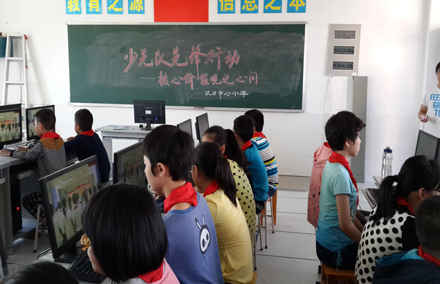 为纪念少先队建队65周年,贯彻落实《关于深入贯彻落实习近平总书记重要讲话精神在中小学少先队员中广泛开展培育和践行社会主义核心价值观活动的通知》(中青联发〔2014〕16号)和共青团福建省委 福建省少工委《关于开展纪念少先队建队65周年“少先队先锋行动——核心价值观记心间”主题队日活动的通知》精神,我校于10月13日下午3点,按照团市、区委文件要求,组织了五至六年级的全体学生,共503人,在学校电脑室观看了 “学先锋榜样  做孝心少年”主题队会,通过观看视频,引导队员寻先锋、知先锋、学先锋、当先锋,懂得要从小做起,从身边的小事做起,主动践行社会主义核心价值观,弘扬正气,做一个新时代高素质的小学生。