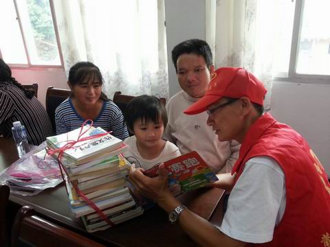 10月12日上午,全市志愿服务行动日当天,黄石镇团委联合市青年志愿者协会开展“书香兴化•携手圆梦”赠书活动,组织青年志愿者走村入户为22名留守、贫困儿童送上图书近500册,同时为每个小孩送上500元的慰问金及书包等学习用品,同时为每位受捐赠小朋友建立爱心档案。
