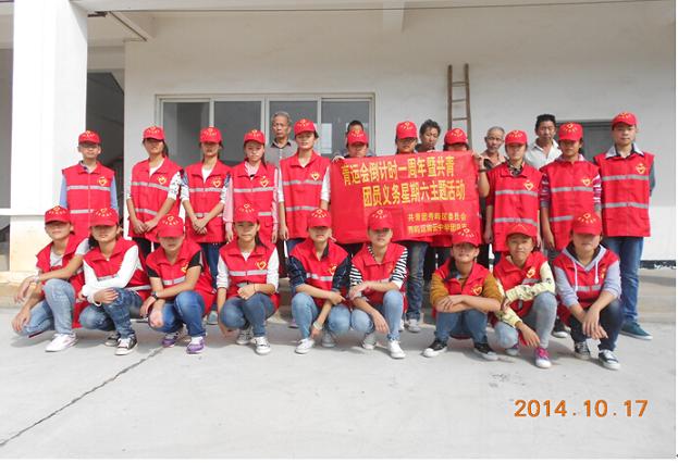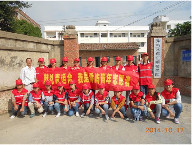 | 共青团秀屿区委员会号召前云中学团总支,于2014年10月17日上午组织20名青年志愿者前往东庄镇敬老院开展“青运会倒计时一周年暨共青团员义务星期六主题活动”。