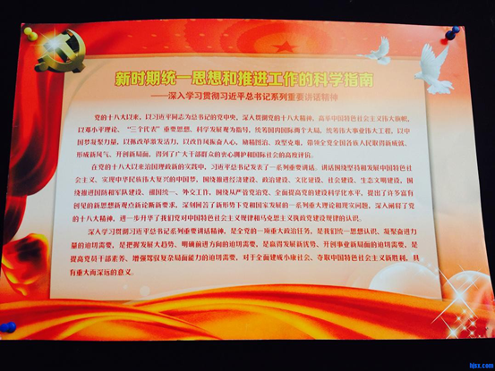 | 党的十八大以来,习近平总书记发表了一系列重要讲话,是指引我们进行具有许多新的历史特点的伟大斗争的重要遵循,是新时期统一思想和推进工作的科学指南。在党的群众路线教育实践活动的总结阶段,我校少先大队部组织全体教师深入学习贯彻习近平总书记系列重要讲话精神,举办专题宣传活动。 在宣传栏中,悬挂习近平总书记系列重要讲话精神宣传挂图,带领党员老师们再次重温习近平总书记的讲话精神。宣传挂图的内容涵盖坚持和发展中国特色社会主义、实现中华民族伟大复兴的中国梦、全面深化改革、促进经济持续健康发展、发展社会主义民主政治和依法治国、建设社会主义文化强国、改善民生和创新社会治理、大力推进生态文明建设、加强国防军队建设、国际关系和我国外交战略、党要管党从严治党等11个方面的重要讲话摘编。其中,关于建设社会主义文化强国和党要管党从严治党等方面的重要讲话摘编,更是指导教育事业科学发展的强大思想武器。