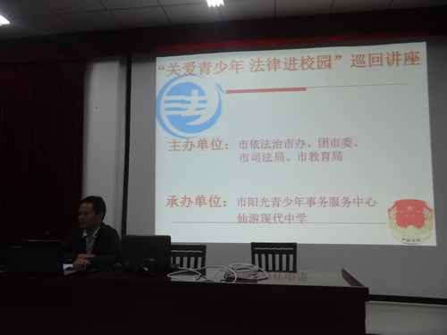 讲座上仙游县司法局鲤南司法所所长邱庆荣结合丰富的案件材料,分析了未成年人违法犯罪的现状、原因。随后,邱所长又谈到了如何预防未成年人犯罪,告诫广大学生要学法、知法、懂法、守法,加强自我防范意识。