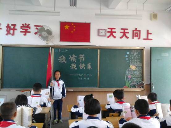 2014年11月11日,三年(4)班七色光中队开展了一次围绕“我读书 我快乐”的主题读书活动。 (63名队员)