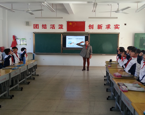 12月26日上午第三节课,二(8)中队的小队员们在教室举行了“我爱读书”主题中队活动。别看队员们年纪小,可开展起中队活动来,一点也不比高年级的哥哥姐姐差。列队、出旗、唱队歌,中队长郑愉斯落落大方、声音响亮。背古诗、演小品、讲故事,队员们表演得都很认真、投入。大家出色的表现让观摩活动的老师们赞叹不已!